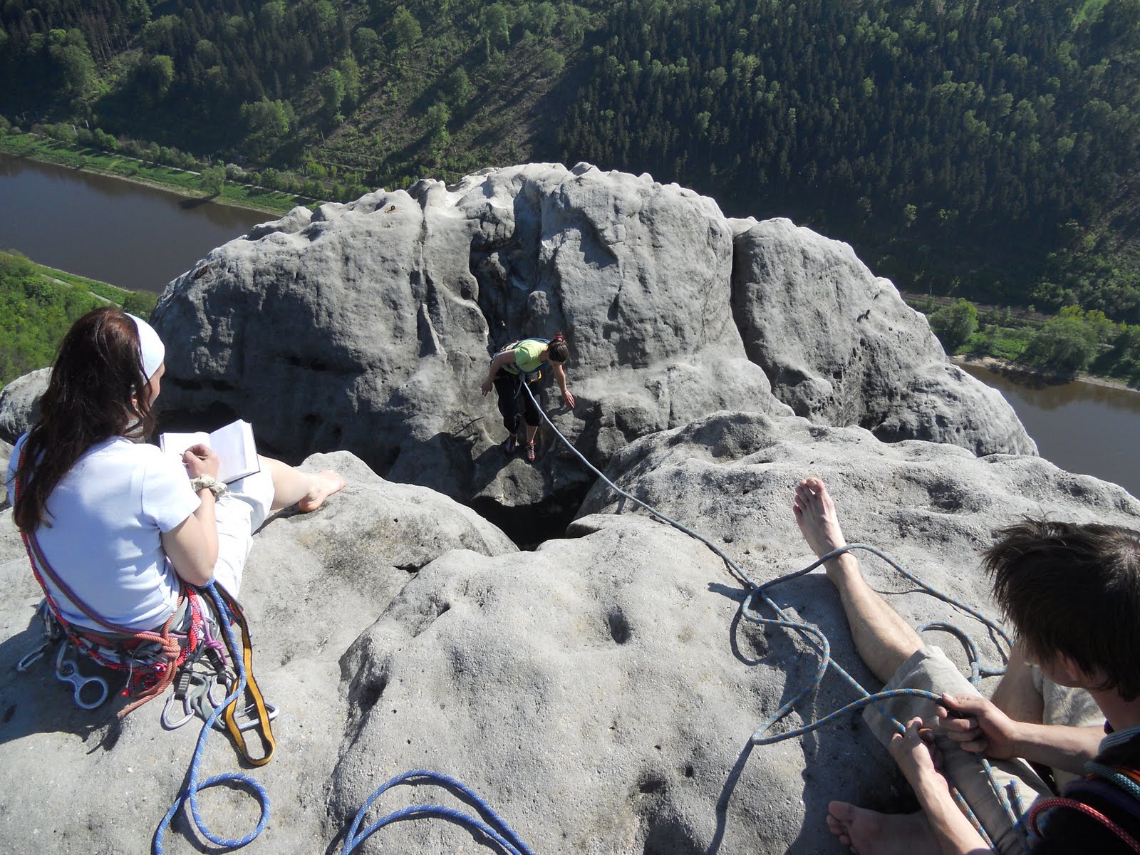 Tak se dívám na ty krásné fotky resp. na ty krásné skály na těch krásných fotkách a vidím titulek, Vrcholek Shrammsteinnadel...tam se ale nesmí. Na vrcholu je vidět slanák. Vrchol je pěkně obroušený, degradovaný mrazovým větráním, erozí deště, větru a nesčetných tlapek skalosapačů. Je to jediný důvod proč se tam nesmí? Nevypadá, že by tam rostlo nějaké vzácné býlí (kromě těch sasanek :-)) nebo tam každý sedmý rok přilétal vyhynulý pták Noh aby tam uložil svá vejce na tvrdo :-).